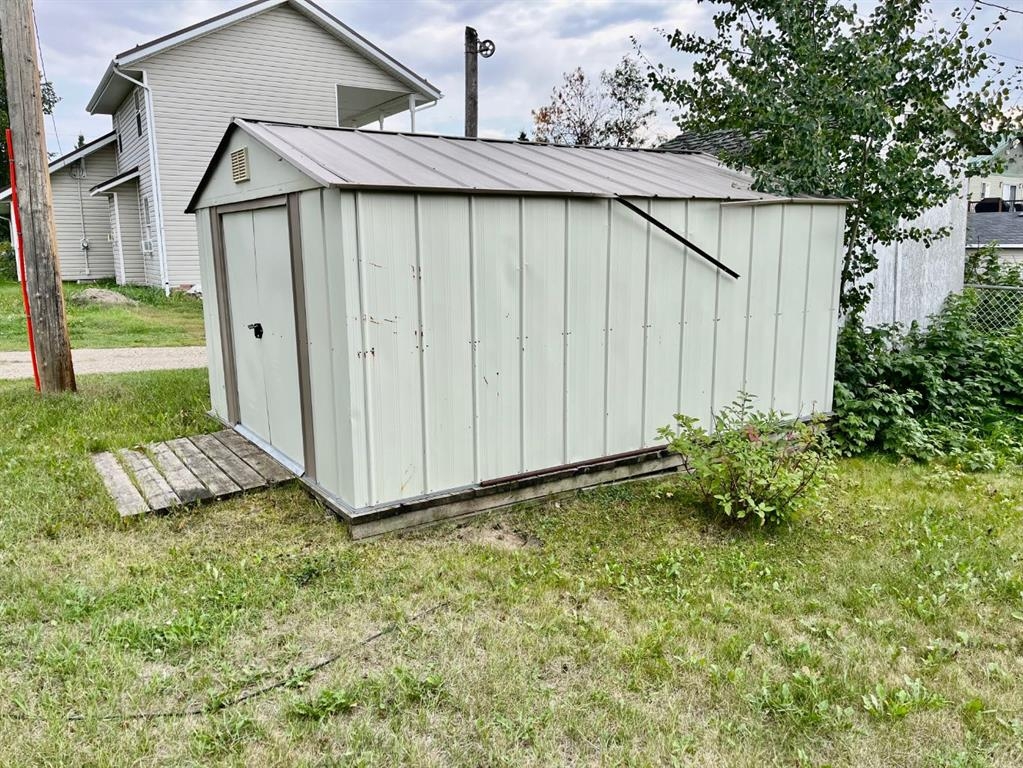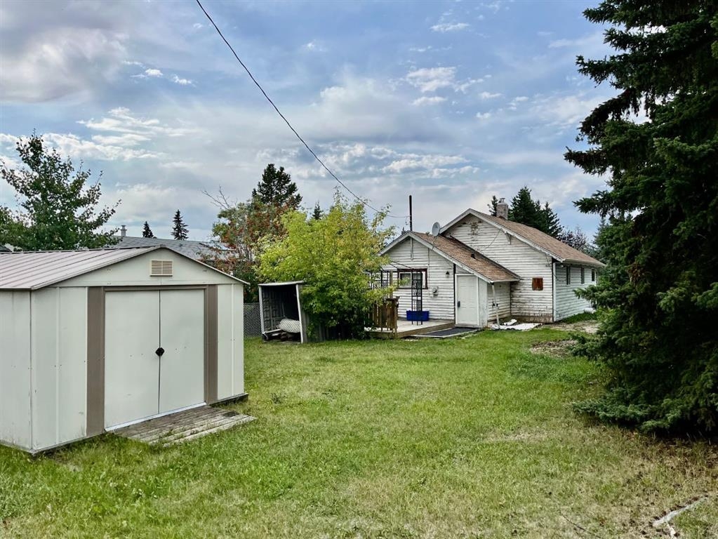Cute little house on a decent sized lot on a quiet street. 2 Bedroom and 1 bath pad, perfect for 1-2 people. Large living room and kitchen w. all appliances included. The basement is concrete and has a place for the washer & dryer, however, there is a convenient place in the back area of the house that would be suitable for a washer & dryer on the main floor. Some of the windows are vinyl, the roof was redone in 2019 with GAF Timberline HD 50 year shingles, Hot water tank replaced in 2013, furnace replaced in 2003 with a High Def. furnace. The yard has big spruce trees by the drive through drive-way with back alley access. There are raspberries and a cherry tree. 2 sheds are included as well as the gazebo on the back deck. Nice private yard on a corner lot. Benalto is centrally located.