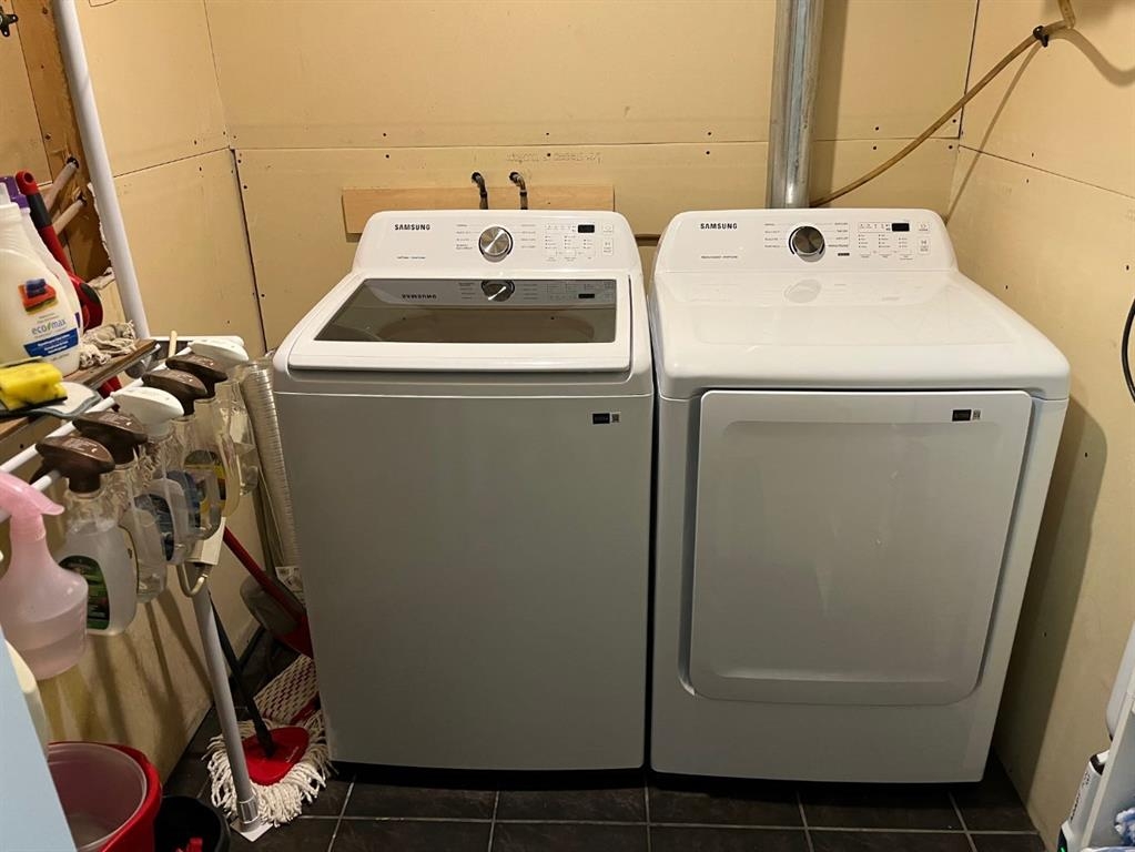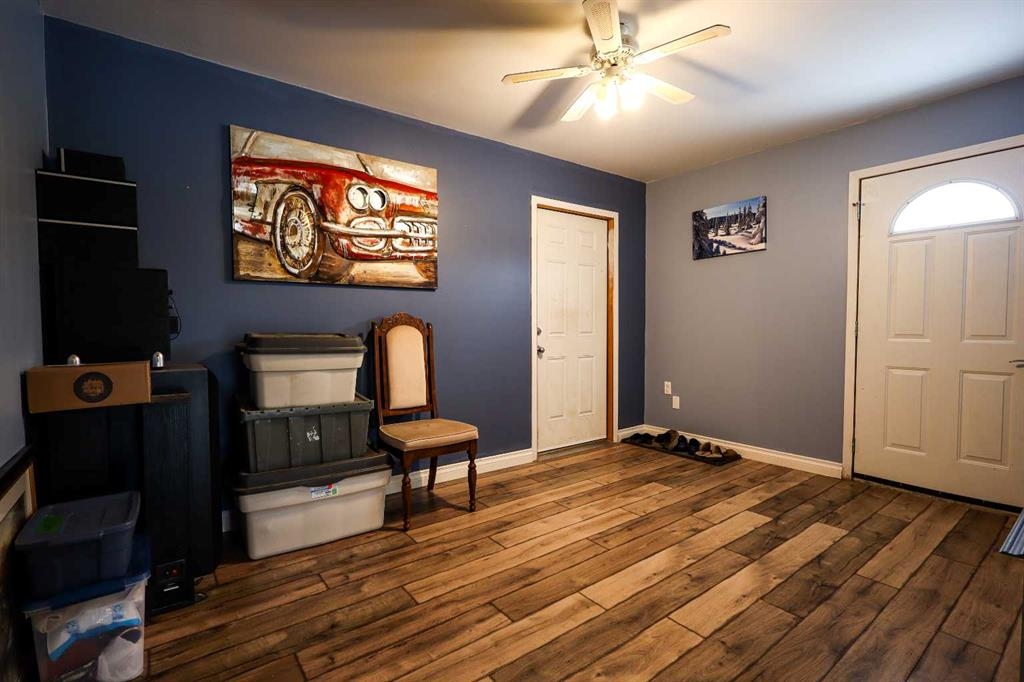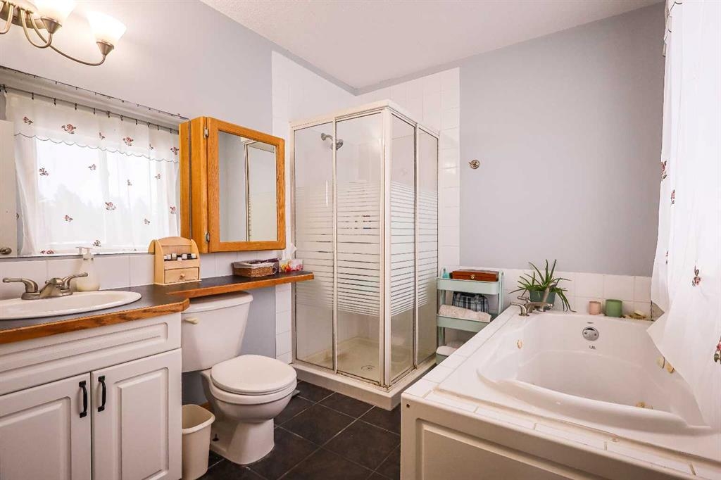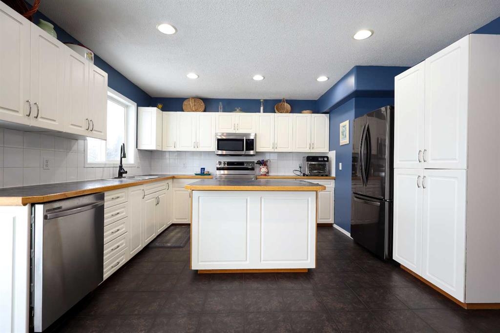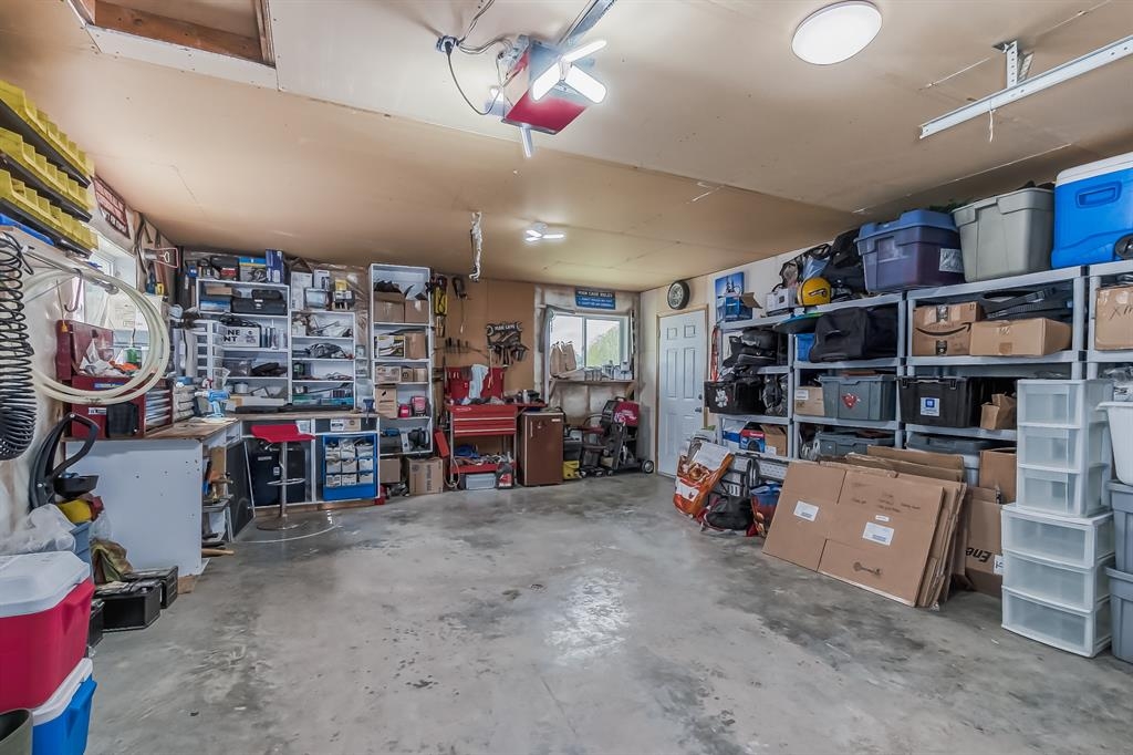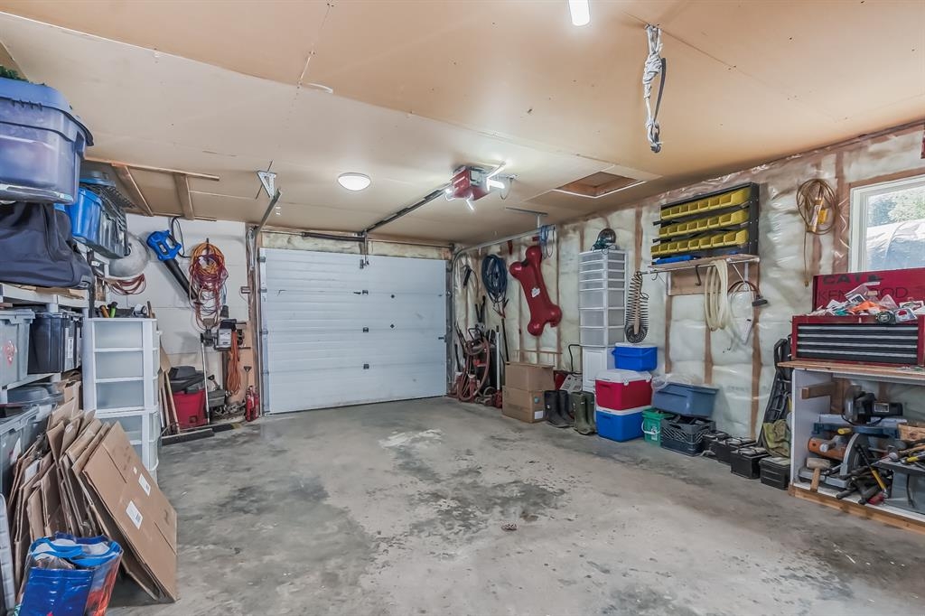 This home boasts 4 spacious bedrooms, including a primary suite with a private 4-piece bathroom. The attached single garage (23’11” x 17’4”) features handy shelving and a workbench for your projects.