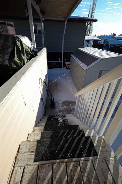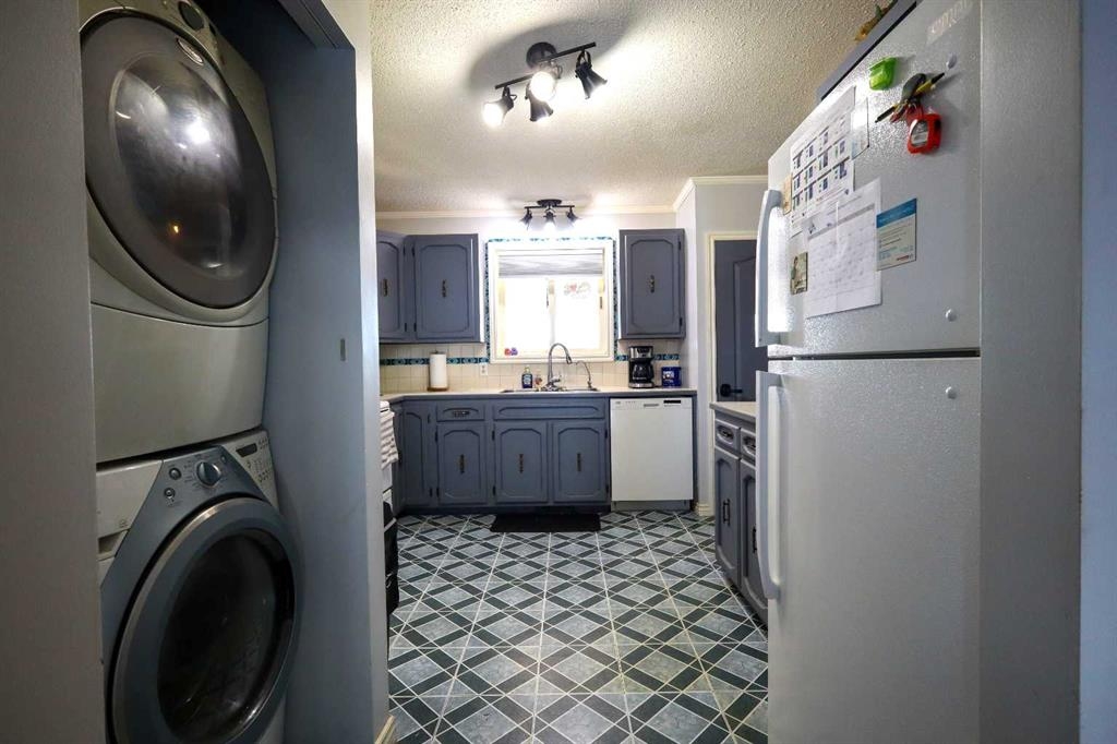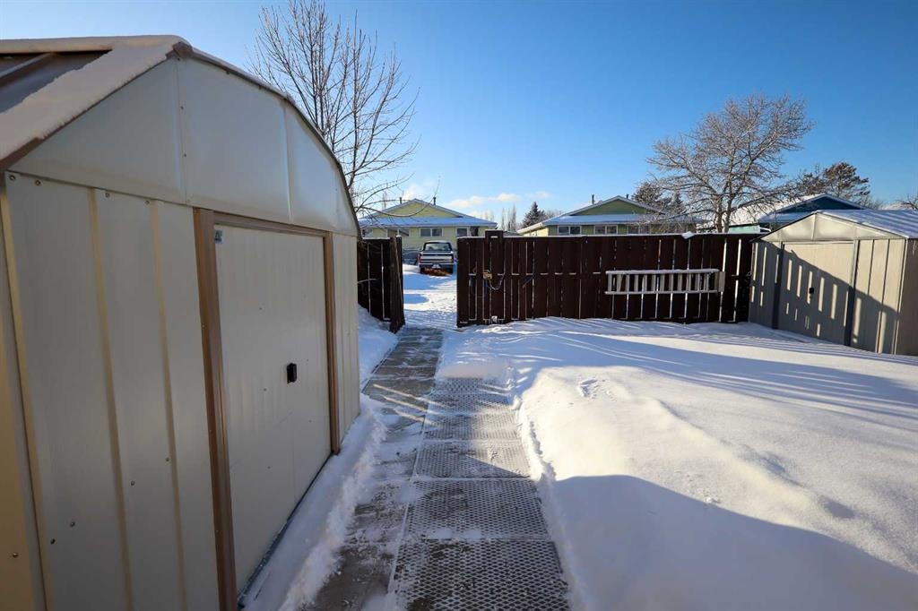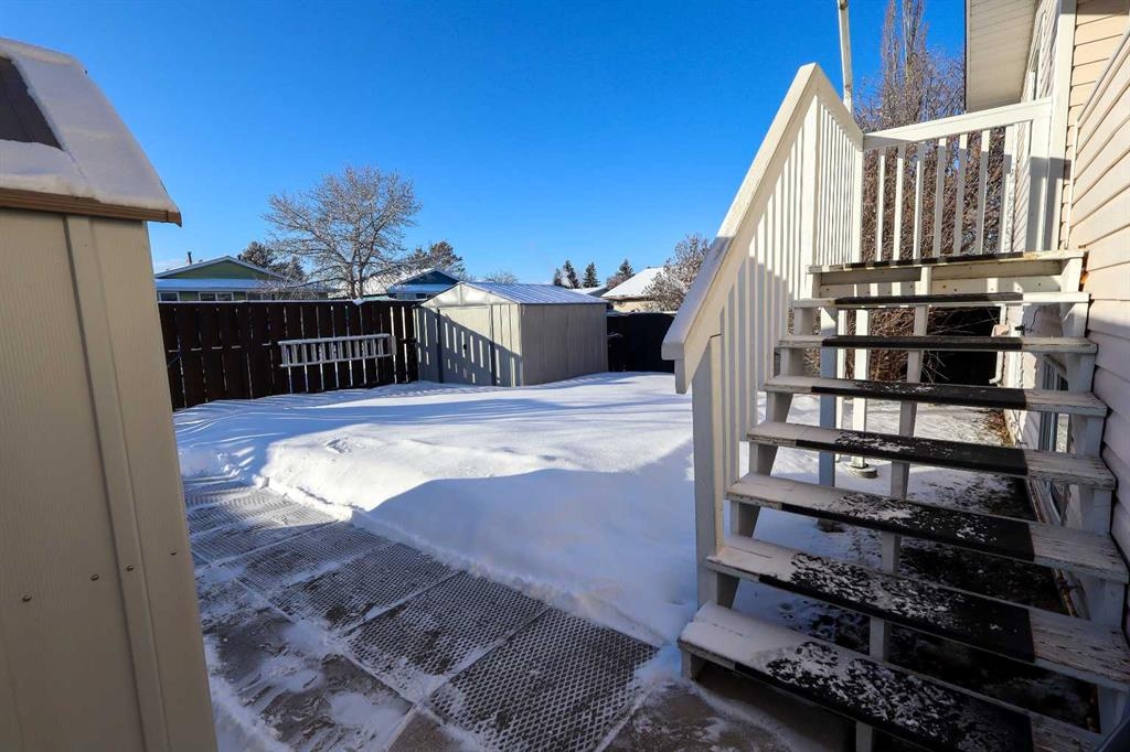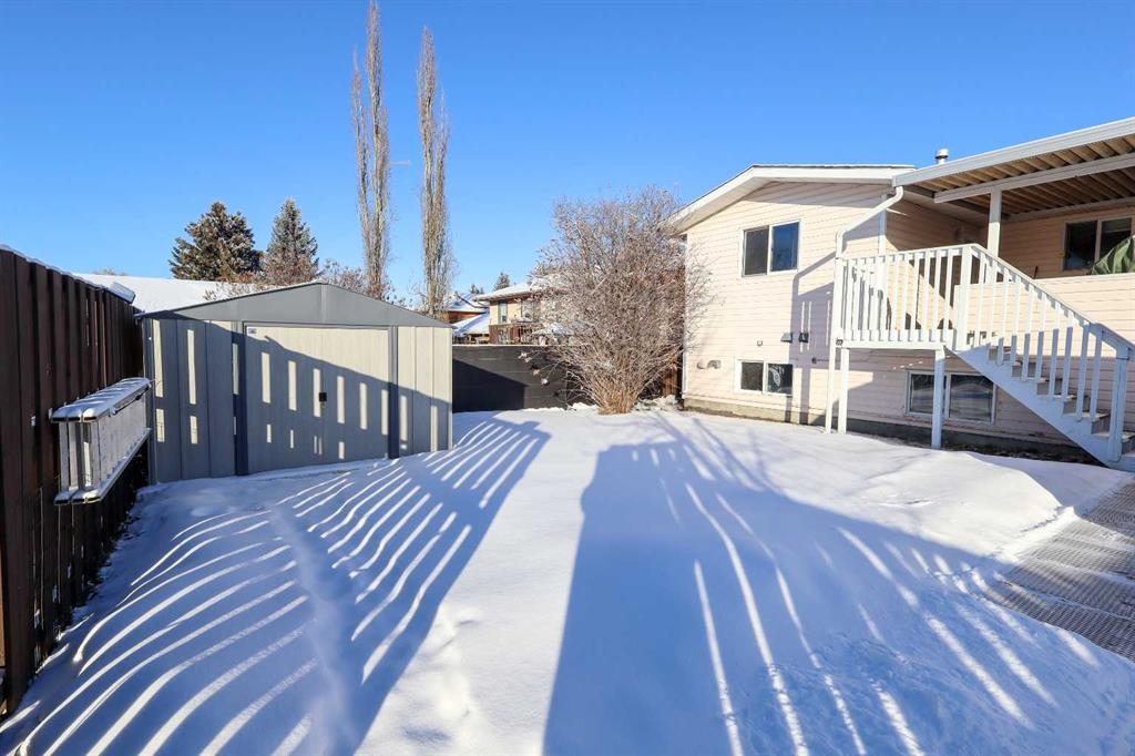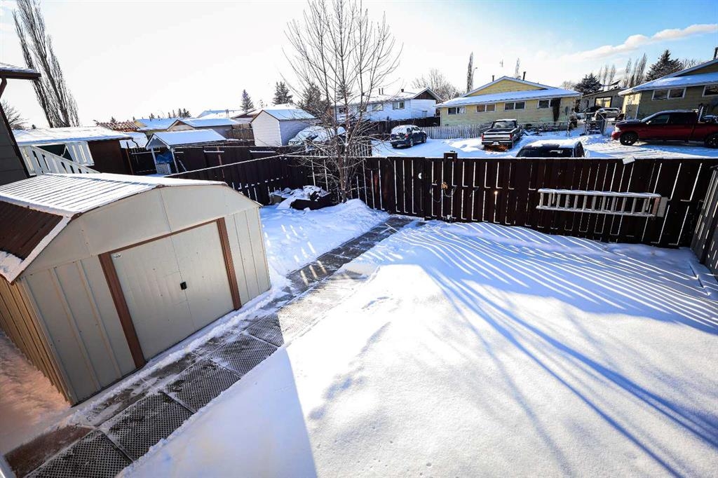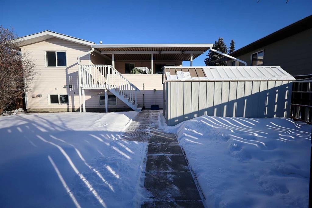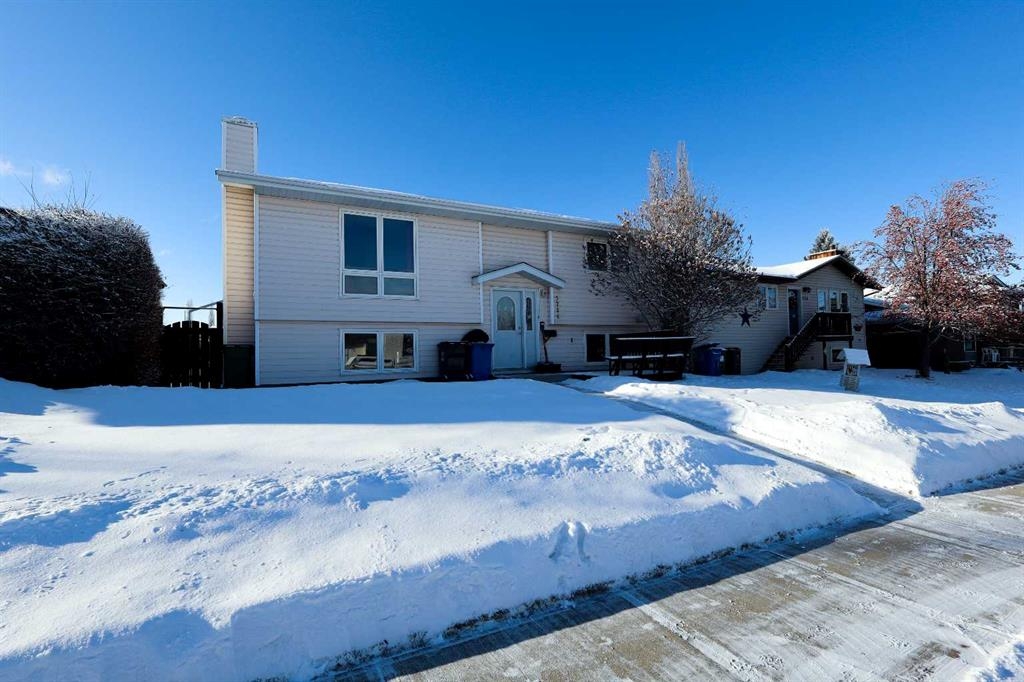 This is a great opportunity to own your own home and potentially have someone downstairs as it is set-up with a kitchenette and can easily be set-up for 2 private living areas. There are 2 bedrooms upstairs with a main bath and 2-pce ensuite. There is a built-in washer and dryer upstairs. The home has a nice sized living room open to the dining room which opens up to a large covered deck. Downstairs the windows are large and allows for a bright living area. There is also 2 bedrooms down with a 4-pce bath. The family room is a spacious area with a fireplace. The backyard is fenced with about 5 parking spaces in the back. The 2 sheds are newer, There is a little deck out front which allows for a separate summer area for someone to enjoy. The furnace has a new motor, hot water tank is 1.5 years old. This property is centrally located, close to schools, shopping.
