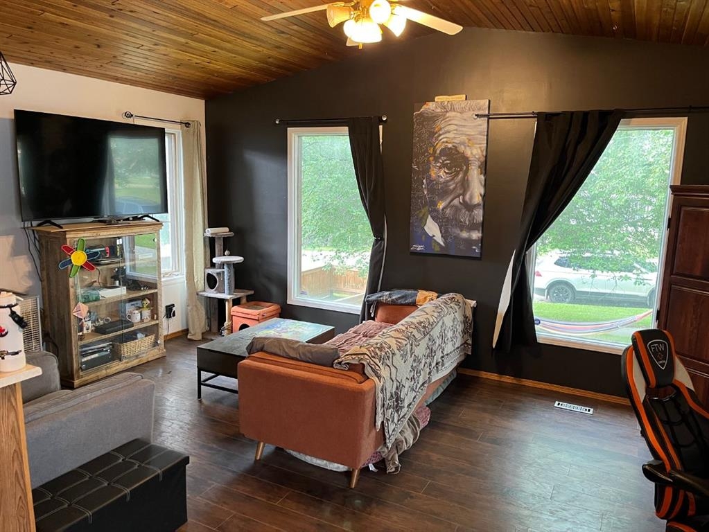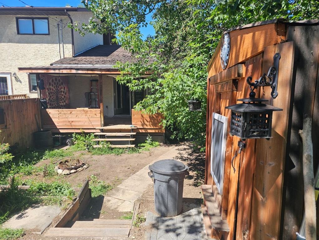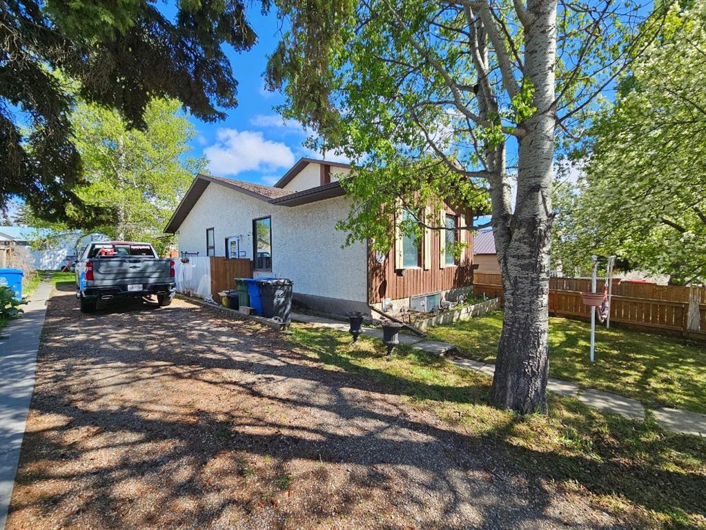 Spacious bungalow duplex close to schools and shopping in Rocky. This home has 2 beds up and 2 down with a main bathroom upstairs and half bath downstairs. The mature lot on a quiet street allows for a peaceful setting. The sunken living room features a free-standing gas woodstove with the vaulted ceilings in wood. The living room is open to the kitchen and dining area. There is room in the basement for a family room and lots of storage. The back yard is completely fenced that opens for extra parking. The garden boxes and a shed are a nice addition. The primary bedroom opens up to the back yard onto the deck -perfect for a hot tub in this private back yard.