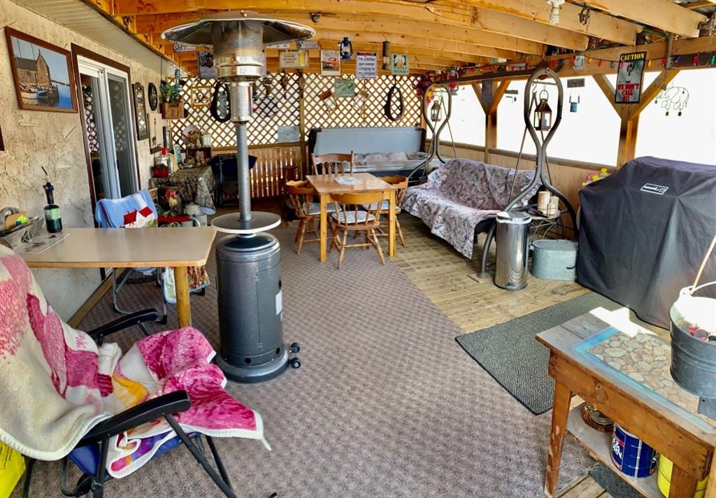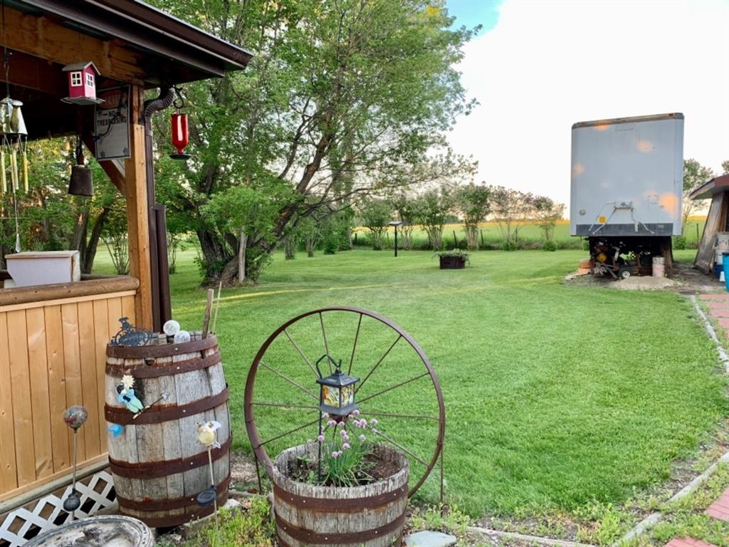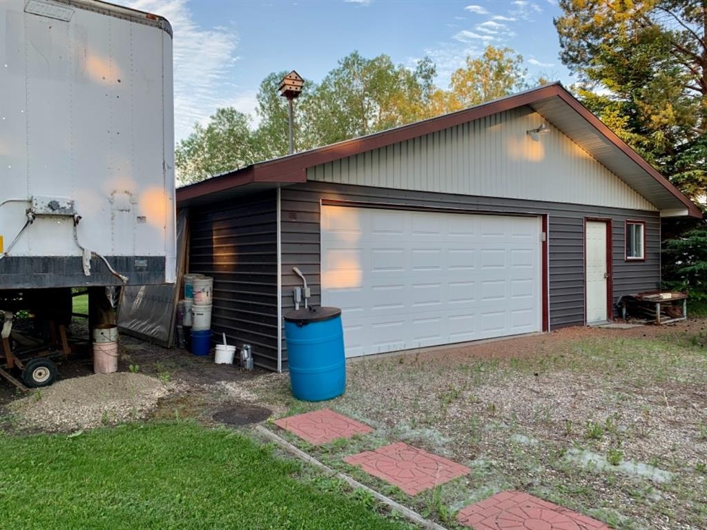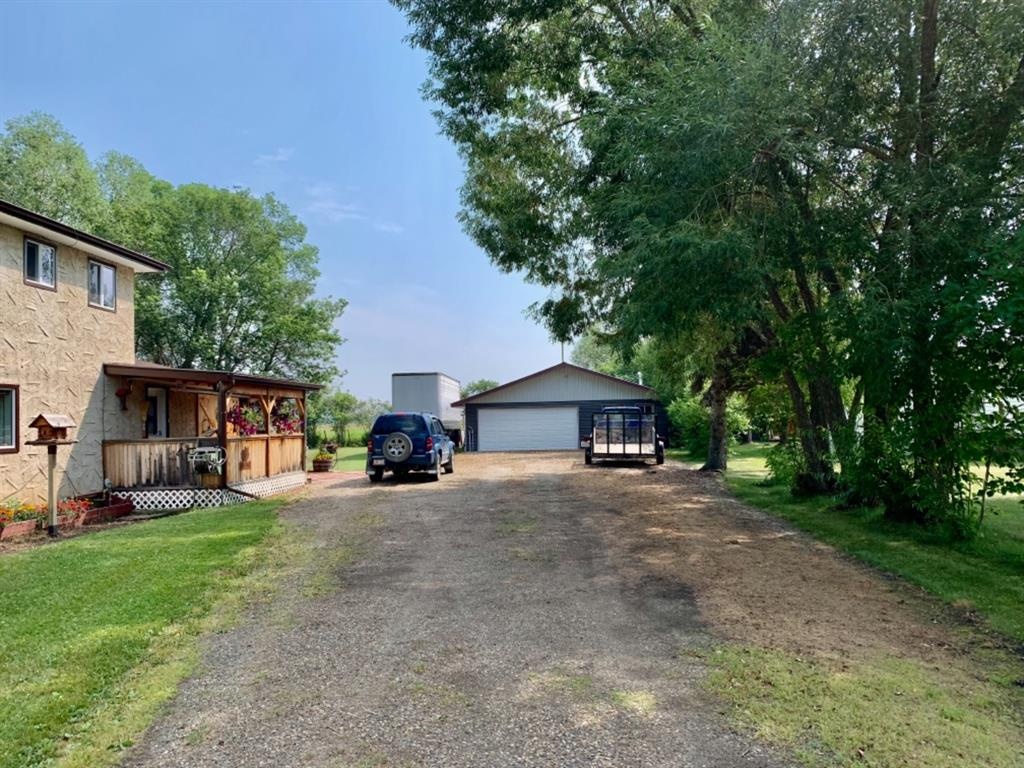 Character Home in Condor on nearly half an acre backing onto a quarter. Close to the home of the new Condor Elementary, busing provided to local schools. The 24X32(w) shop is a completely finished; insulated, heated with natural gas, new overhead door 7X16(w), metal roof and metal clad siding, concrete floor 220v for welder. There is a 25 ft. storage unit included. The house has an enclosed back deck 16X24, panels come off in the summer. Beautiful for the hot tub and BBQ. There is a side covered deck 7'10X15'9. The main portion of the house sits on a concrete foundation with a stand-up crawl space for the utilities. The main floor is spacious with main floor laundry, 2-pce. bath and a dining room, kitchen, huge living room with gas fireplace, an office or sewing room, could also be a bedroom. Upstairs provides 3 bedrooms and a 3-pce. bath. All the windows were replaced within the last couple of years.
