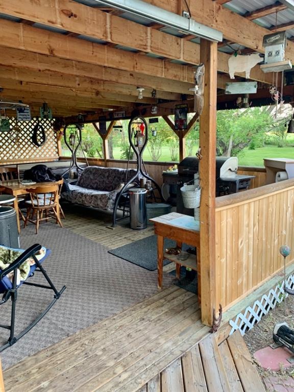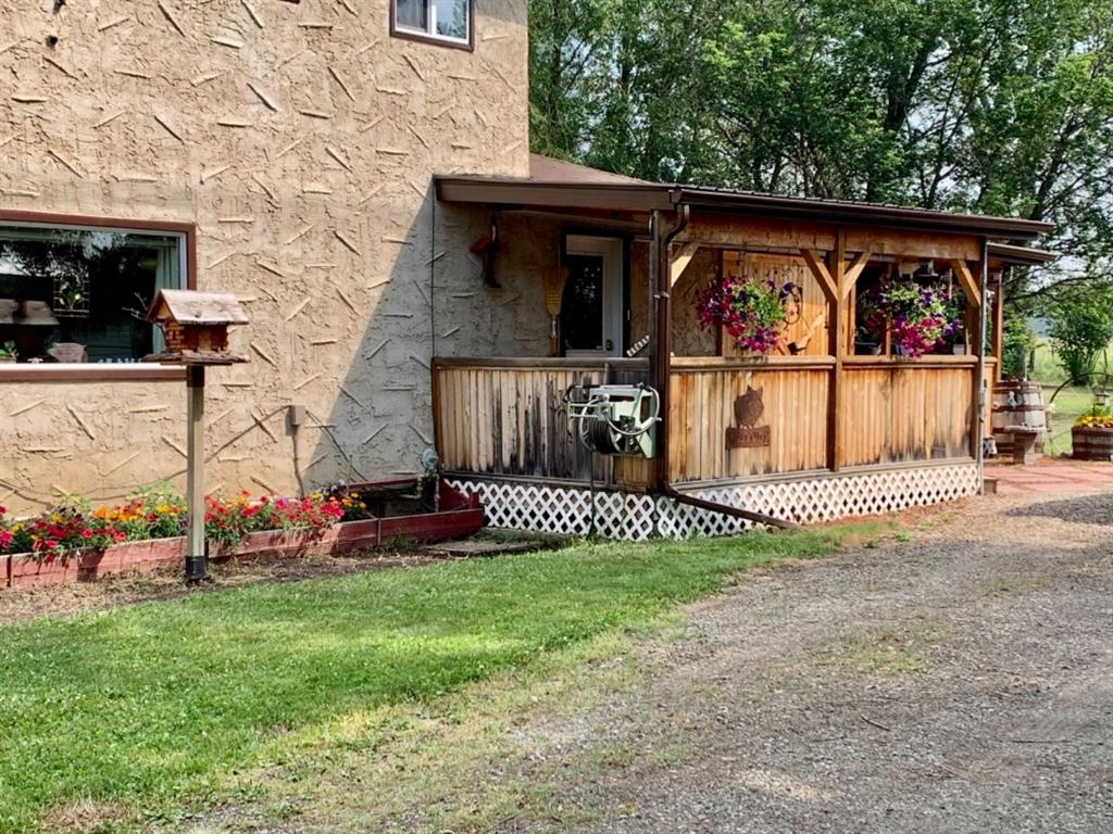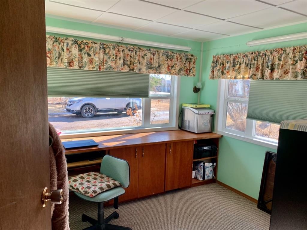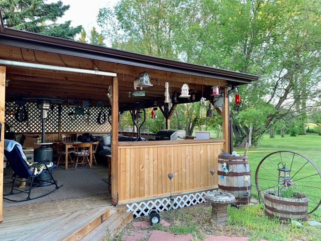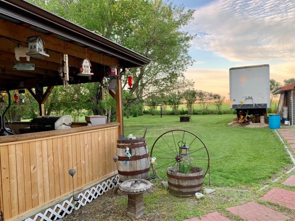 Character Home in Condor on nearly half an acre backing onto a quarter. Close to the home of the new Condor Elementary, busing provided to local schools. The 24X32(w) shop is a completely finished; insulated, heated with natural gas, new overhead door 7X16(w), metal roof and metal clad siding, concrete floor 220v for welder. There is a 25 ft. storage unit included. The house has an enclosed back deck 16X24, panels come off in the summer. Beautiful for the hot tub and BBQ. There is a side covered deck 7'10X15'9. The main portion of the house sits on a concrete foundation with a stand-up crawl space for the utilities. The main floor is spacious with main floor laundry, 2-pce. bath and a dining room, kitchen, huge living room with gas fireplace, an office or sewing room, could also be a bedroom. Upstairs provides 3 bedrooms and a 3-pce. bath. All the windows were replaced within the last couple of years.
