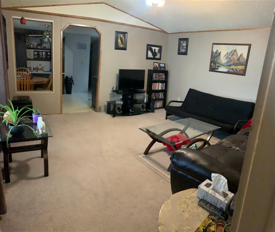 Bring your handy man decorating skills and give this home your personal touch. Sitting on a large lot that has a completely fenced yard and features plenty of outdoor living space with a large covered front deck and enclosed back deck, Upgrades to this 3 bedroom, 2 bathroom mobile home have been roof shingles, some windows and doors. This 16 x 76 Winalta Shelter makes for a great starter home or if your looking to downsize. Lot rent is $525/month and includes water, sewer and garbage collection. Subject to park approval.