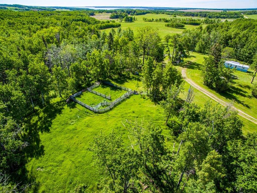 Unique Full Quarter minutes to the boat docks at Sunbreaker Cove, Bentley Ski Hill & Last Hill Golf Course. This amazing quarter has beautiful building sites with views of Sylvan Lake. The property has a healthy pasture area currently leased from June to October which nicely facilitates 25-30 cow/calf pairs. The property is approximately 65 acres cleared and the remainder in trees. The treed area would be conducive for beautiful horse trails. There is currently a yard site with a beautiful view and other potential building sites that would accommodate a walk-out basement. The yard site has a liveable 1965 mobile home which is ideal for a get-away. The yard site is powered and has a couple 30 amp service plugs for RV's -- the mobile runs on propane and gas is nearby, the mobile is connected to a septic tank & an excellent well which also provides water to the cattle waterier. This developed yard site is completely surrounded in trees offering solitude & peacefulness with only 2 miles of gravel. There is a corral set-up with 3 pens and a head gate as well as an outside riding arena. Property is perimeter fenced.