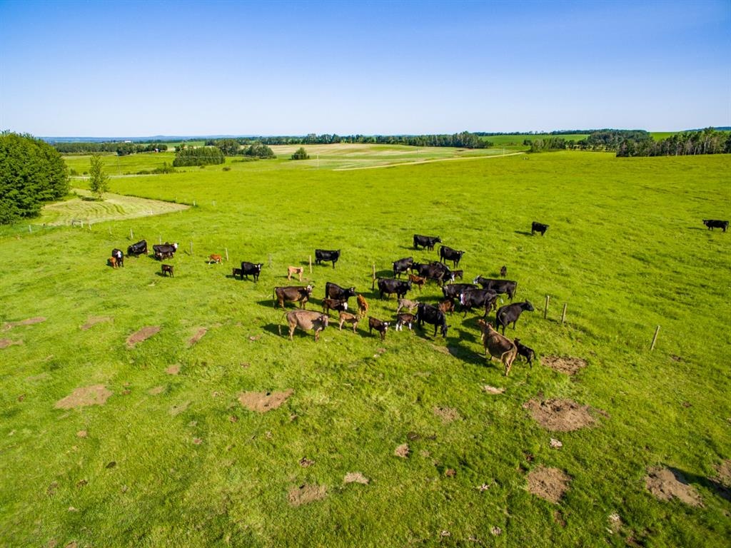 Excellent pasture quarter section with gently rolling terrain, fenced and cross fenced, with grey wooded soil. The land was previously planted to crop. This location is fantastic with easy access to Sylvan Lake from Rainy Creek Road, 7 minutes to Eckville and 40 minutes to Red Deer. The quarter has a drilled well which is hooked-up to a solar pump. There is power, 220 amp service to the property and gas nearby. There is a shop with a concrete floor, an 18 foot overhead door and workbenches. There is also a lean-to which is in good condition and an excellent place for storage. A 32 foot, fully serviced and functional Glendale fifth wheel (including towing connection) with two slide outs is included with the property. The property generates $18,000.00 in oil revenue and $3,000.00 in pasture rent for a total of $21,000.00 + annually. The quarter holds 40- 50 cow/calf pairs per season.