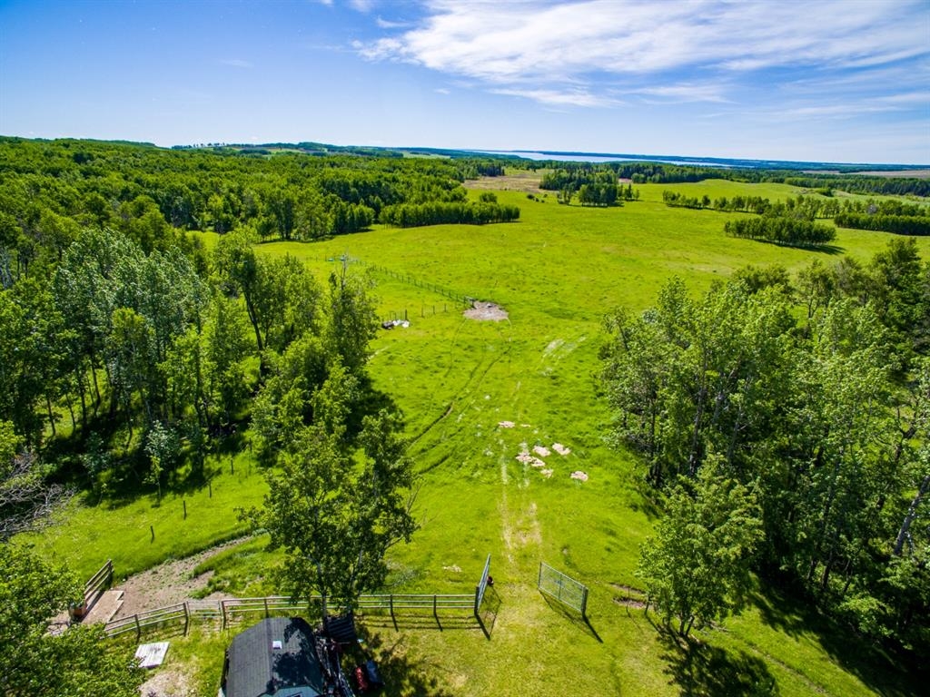 Unique Full Quarter minutes to the boat docks at Sunbreaker Cove, Bentley Ski Hill & Last Hill Golf Course. This amazing quarter has beautiful building sites with views of Sylvan Lake. The property has a healthy pasture area currently leased from June to October which nicely facilitates 25-30 cow/calf pairs. The property is approximately 65 acres cleared and the remainder in trees. The treed area would be conducive for beautiful horse trails. There is currently a yard site with a beautiful view and other potential building sites that would accommodate a walk-out basement. The yard site has a liveable 1965 mobile home which is ideal for a get-away. The yard site is powered and has a couple 30 amp service plugs for RV's -- the mobile runs on propane and gas is nearby, the mobile is connected to a septic tank & an excellent well which also provides water to the cattle waterier. This developed yard site is completely surrounded in trees offering solitude & peacefulness with only 2 miles of gravel. There is a corral set-up with 3 pens and a head gate as well as an outside riding arena. Property is perimeter fenced.