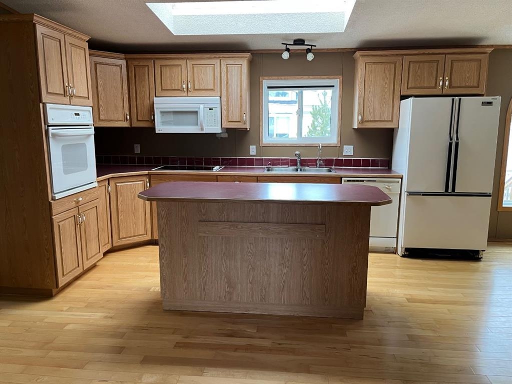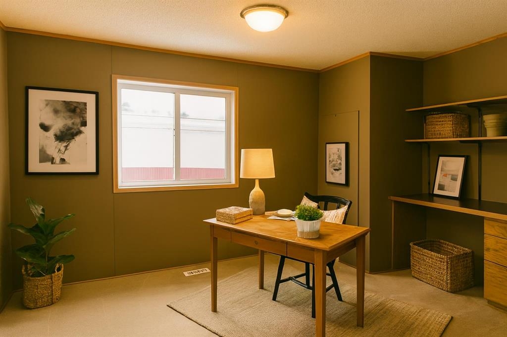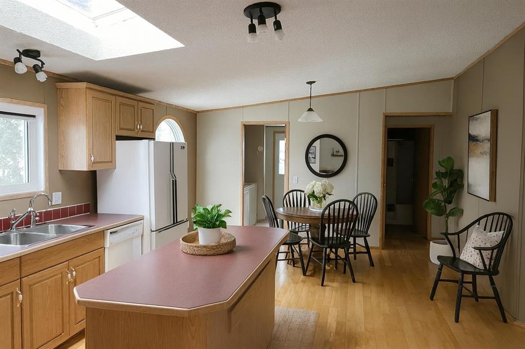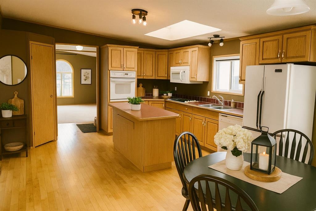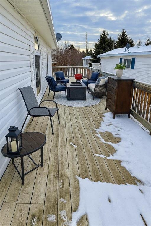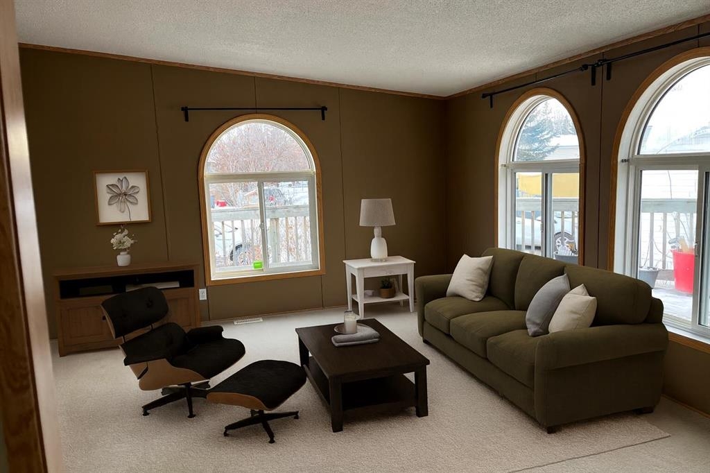 Spacious modular home, room for the family on its own lot backing onto farm land in the Town of Caroline. This home sits on metal pilings and is in great condition. There are 3 bigger bedrooms with a big den that could be used for a spare bedroom, office or work-out room. The living room is a good size and sits at the front of the modular as you enter the front door. The kitchen and dining area are spacious with a kitchen island and lots of cupboards. The back entrance houses the washer and dryer. The primary bedroom has a ensuite with jetted tub and a walk-in closet. The main bathroom is near the additional 2 bedrooms. This is a nice lay-out and not the usual floor plan. There is back alley access and a decent side and front yard; partially fenced. There is a wrap-around deck on 3 sides which is great extra space in the summer months. In the yard is a beautiful apple tree and ornamental plum tree. The mobile under-belly was insulated with an arctic insulation pkg. in 2015, all heat tapes have been checked and re-insulated. The Town of Caroline has a school, arena, bank. professional center, pharmacy, a few retail stores and is close to the west country. Fluent Security System may be transferred & is $26/mo. Fire hydrant is on the close. Home has been virtually staged.