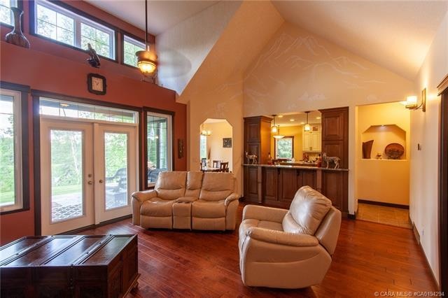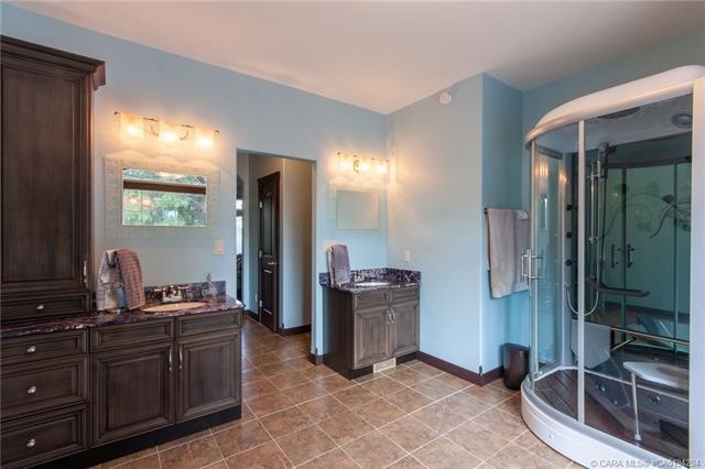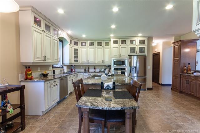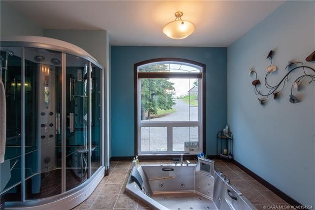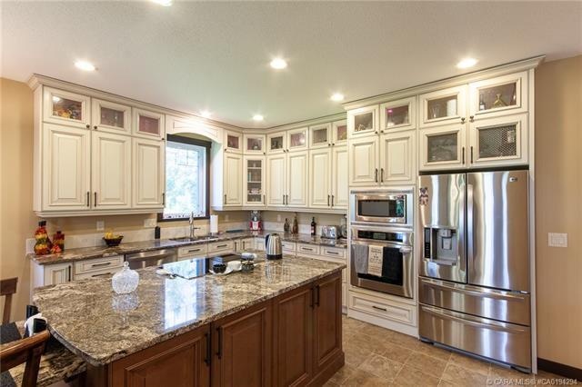 This amazing property features a tastefully constructed bungalow, attached over-sized double garage with bonus room. In addition, is a triple car garage & guest house. The home is easily accessible by wheel chair from the wide, stamped concrete wrap-around patio. Entering the foyer leads to the great room which is open to the kitchen and media room. The kitchen is beautifully constructed with plastic coated maple cabinetry w. rain drop glass, Miele induction stove-top, stainless steel appliances, center island w. attached table nook. The media room offers a closet & built in shelving which could easily be used as a bedroom. The great room, sun room & master bedroom have access to the enclosed west facing patio. The spa room is sure to grab your attention! The jetted hot tub and steam room have a built-in radio & tv, his/her sinks, marble counter tops which leads to walk-in his & her closets. The main floor also offers an additional bedroom, 4-pce. bath & laundry room. The bonus room is set-up as a games room. Many of the rooms have tray ceilings and custom built windows and doors due to the wider ply-wood construction & finger jointed studs. Windows are triple pane windows on the west. The triple car garage has a completely finished guest suite above & the shop is equipped with stainless steel workbench, 2-pce. bath. The guest house features kitchenette, living area, bedroom and 4 pce. bath. The shop and guest house includes all appliances, a separate furnace, hot water tank & septic system. This property must be seen to be appreciated.